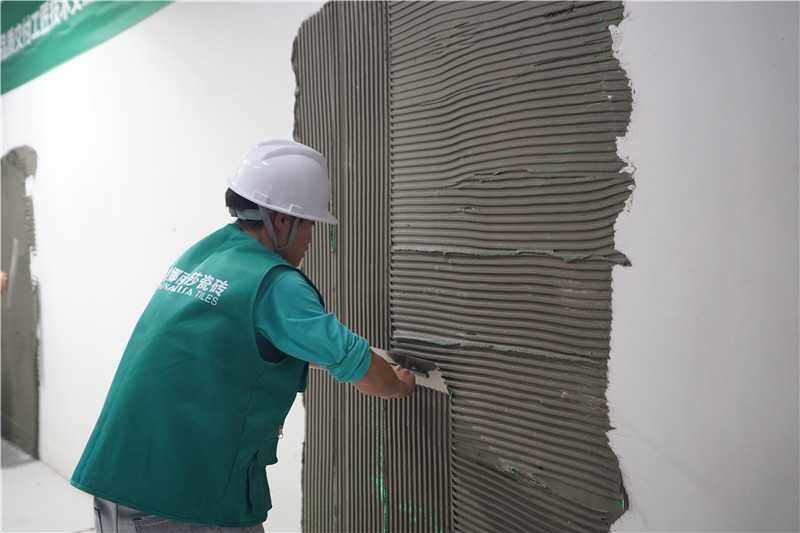 以理論為引導,從實戰(zhàn)見真章。下午3點,鋪貼實訓、施工鋪貼技能大賽正式開啟。近百名工長同臺競技,從基層處理到細節(jié)收口,每一步都考驗技藝與協(xié)作。