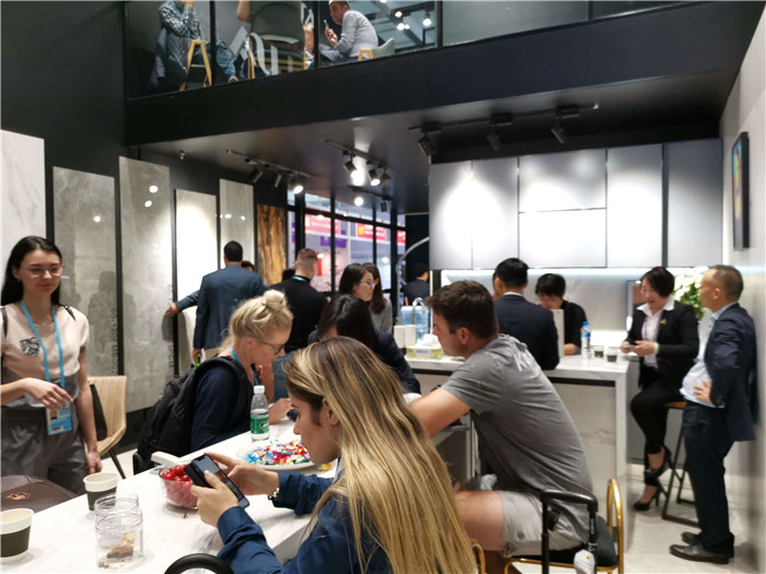 本屆廣交會,蒙娜麗莎集團突出打造廚房場景,重點展示陶瓷大板、陶瓷巖板、薄板在整體家居中的應用。蒙娜麗莎集團副董事長霍榮銓表示,目前美國、東南亞等國家和地區(qū)逐漸使用巖板取代人造石、石英石作為廚衛(wèi)家居功能板,蒙娜將緊緊抓住這個機遇,重點推介巖板類產(chǎn)品。
