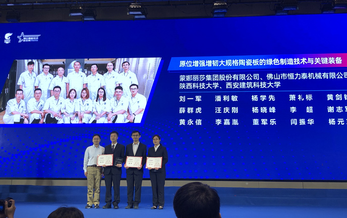 蒙娜麗莎集團與佛山市恒力泰機械有限公司、陜西科技大學(xué)、西安建筑科技大學(xué)聯(lián)合完成的“原位增強增韌大規(guī)格陶瓷板的綠色制造技術(shù)與關(guān)鍵裝備”項目喜獲一等獎。該項目自主研發(fā)了原位增強增韌大規(guī)格陶瓷薄板的綠色制造技術(shù)及其關(guān)鍵裝備,在國際領(lǐng)域首次建成年產(chǎn)百萬平米以上大規(guī)格干壓陶瓷薄板生產(chǎn)線。通過十多年創(chuàng)新,攻克了大規(guī)格陶瓷薄板強度不足、拋光破損大、終端應(yīng)用困難等技術(shù)難題。產(chǎn)品的產(chǎn)能及性能不斷提升,取得了一系列重大科技成果,引領(lǐng)了陶瓷行業(yè)“薄型化”的綠色發(fā)展方向。