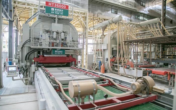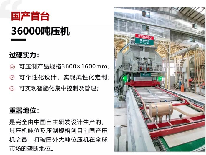 2019年7月4日,由蒙娜麗莎與恒力泰合力研發(fā)的首臺HT36000壓機(jī)在蒙娜麗莎集團(tuán)西樵生產(chǎn)基地正式上線運(yùn)行,并且成功壓制出3600×1600mm超大規(guī)格陶瓷大板。這是迄今為止國產(chǎn)首臺超大噸位壓機(jī),對中國建陶行業(yè)而言,是一項(xiàng)標(biāo)志性的技術(shù)創(chuàng)新,亦是衡量陶瓷大板生產(chǎn)實(shí)力的重要標(biāo)志。36000噸壓機(jī)的上線,意味著蒙娜麗莎集團(tuán)3600×1600mm超大規(guī)格巖板即將面世。