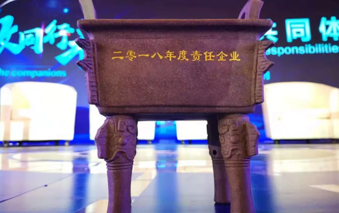 獎(jiǎng)座以古代的四足方鼎來設(shè)計(jì),寓意社會(huì)責(zé)任,一種承諾,一言九鼎