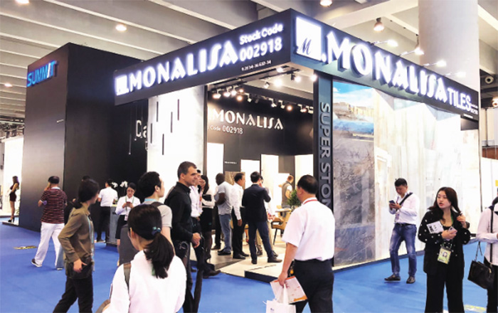 本屆廣交會出口展按16大類商品設(shè)置51個(gè)展區(qū),展位總數(shù)59647個(gè),參展企業(yè)24947家。品牌展位12125個(gè),占20%;一般性展位47522個(gè),占80%。第一期參展企業(yè)8735家,第二期7561家,第三期8651家。蒙娜麗莎作為中國建陶業(yè)的優(yōu)秀標(biāo)桿企業(yè),參加了第一期建材展。