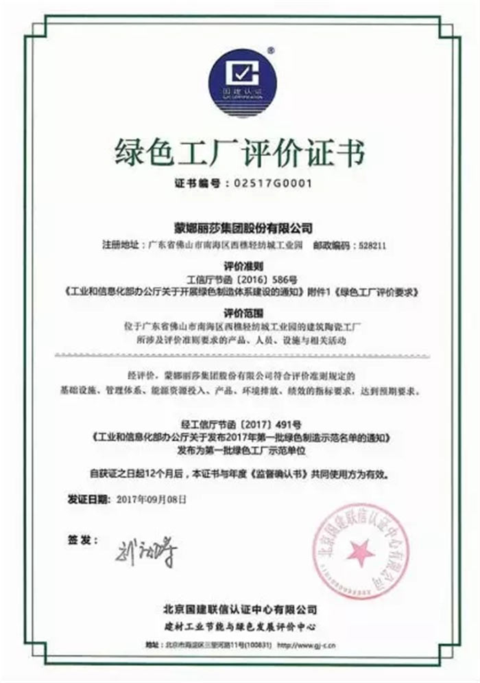 蒙娜麗莎是國家工信部“綠色工廠示范單位”,也是“資源節(jié)約型、環(huán)境友好型”試點創(chuàng)建企業(yè)