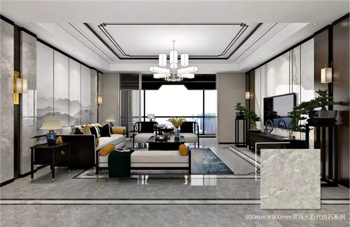 新中式+仿石瓷磚