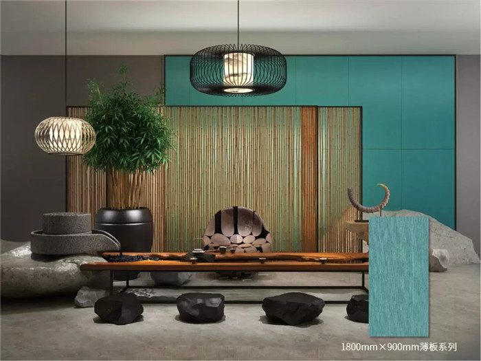 當將經歷過幾十億年地殼變化而造就的天然石材紋理,經過復刻,與新中式相遇,置于家居空間中,會碰撞出怎樣的火花?