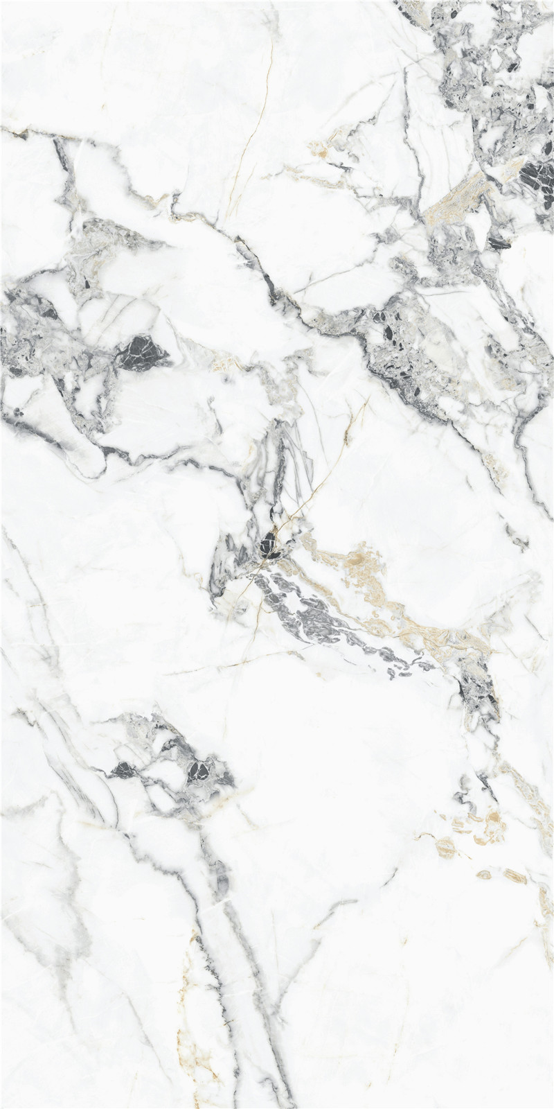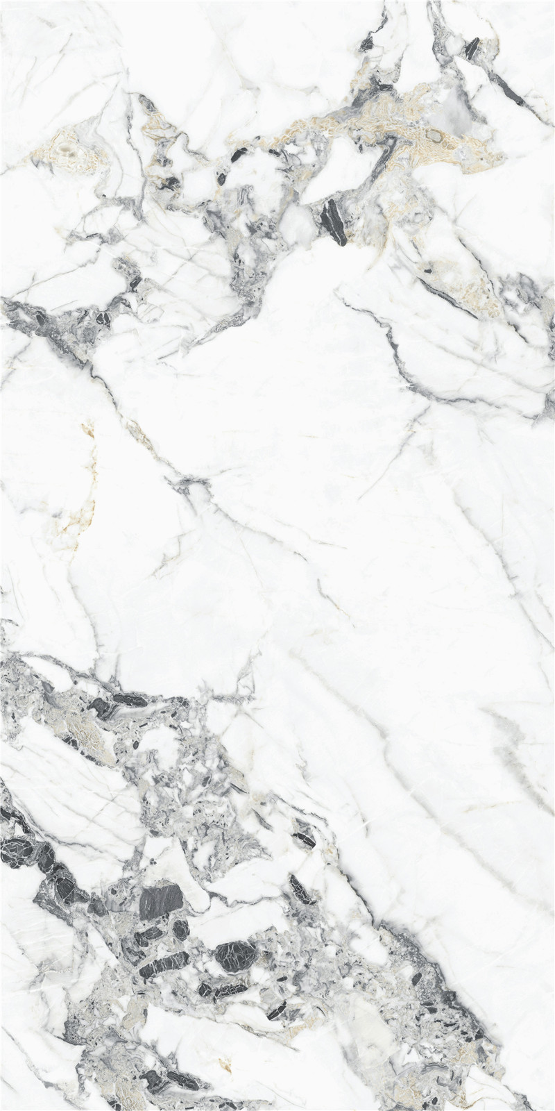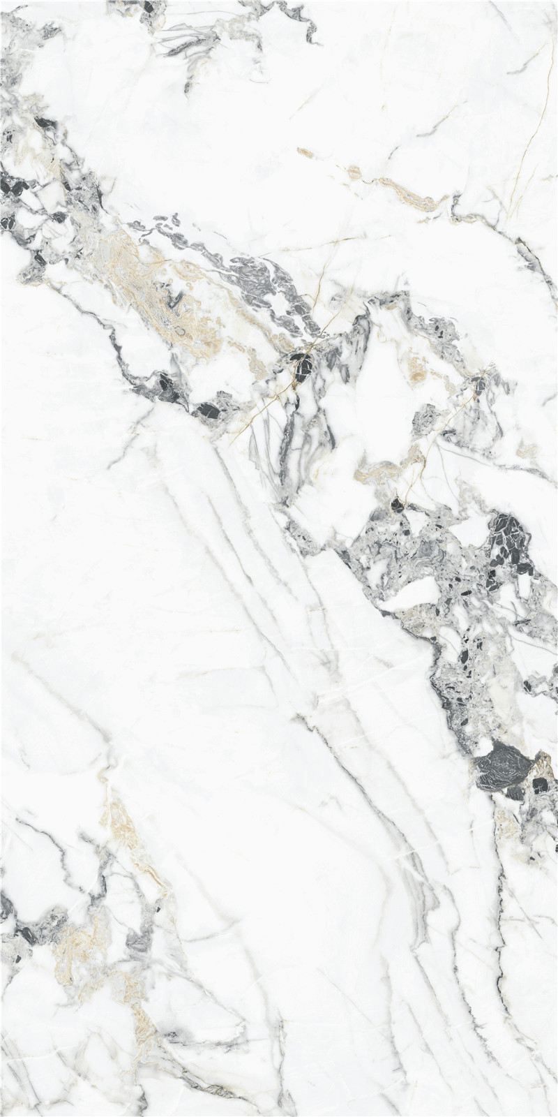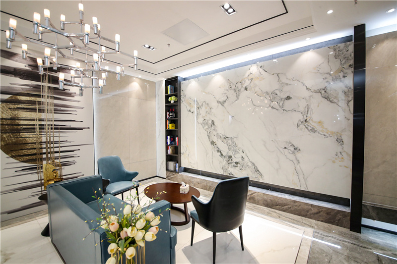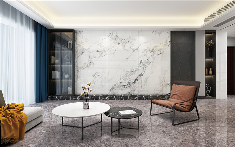 性之所至,高風絕塵。 白色肌底上自然奔放的紋理,如墨韻般傾瀉而下, 淋漓盡致地展現(xiàn)了天然石材的空靈深邃, 金色紋理的點綴更添生命力, 仿佛每一條紋路都在講述屬于它自己和時間的故事。
