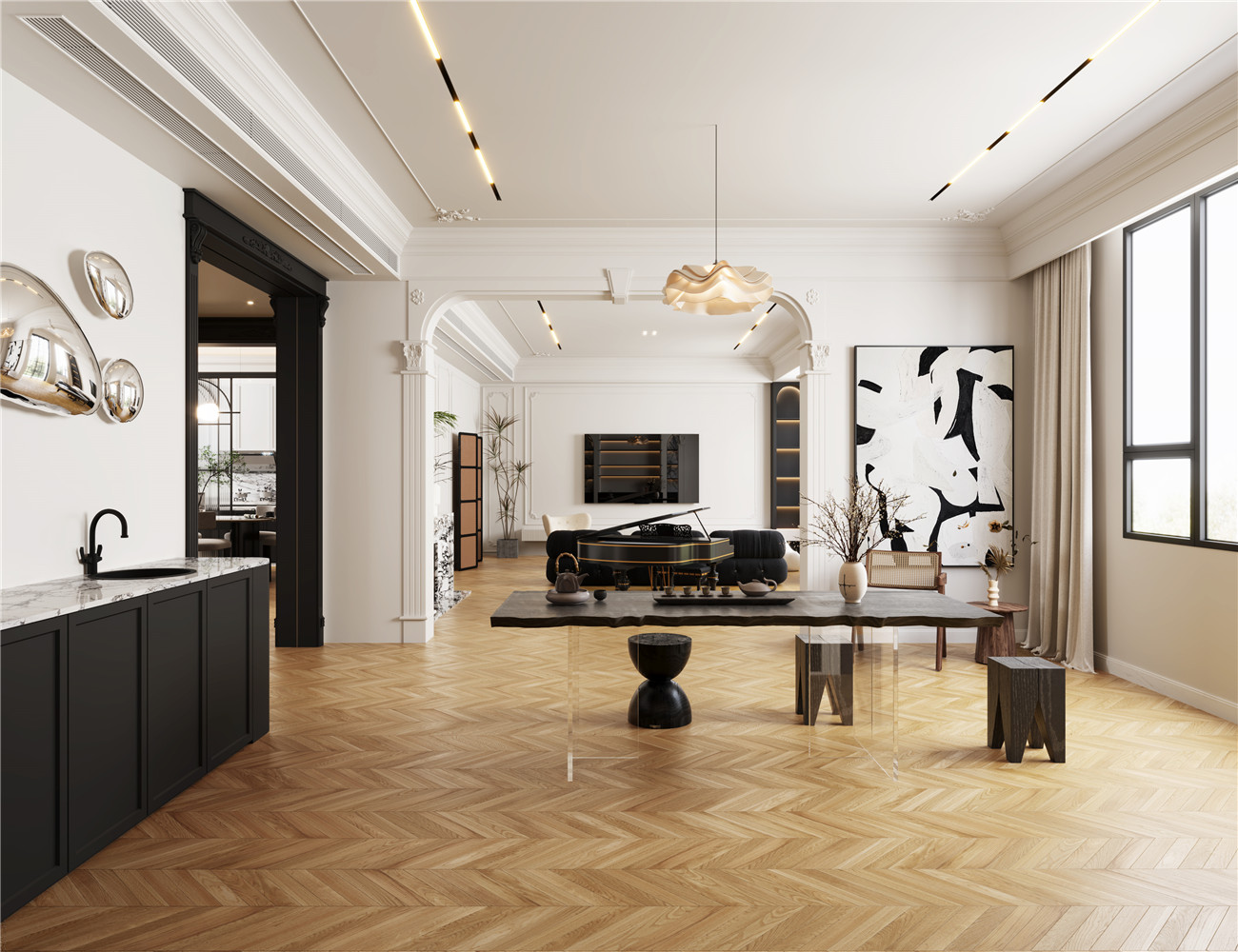 溫暖的暖黃,清晰細(xì)膩的原木紋理,如同置身瑞士琉森湖畔的木屋,沉浸在湖光山色的自然愜意與生機(jī)盎然,品味峽灣中古風(fēng)格建筑文化的詩(shī)意浪漫。