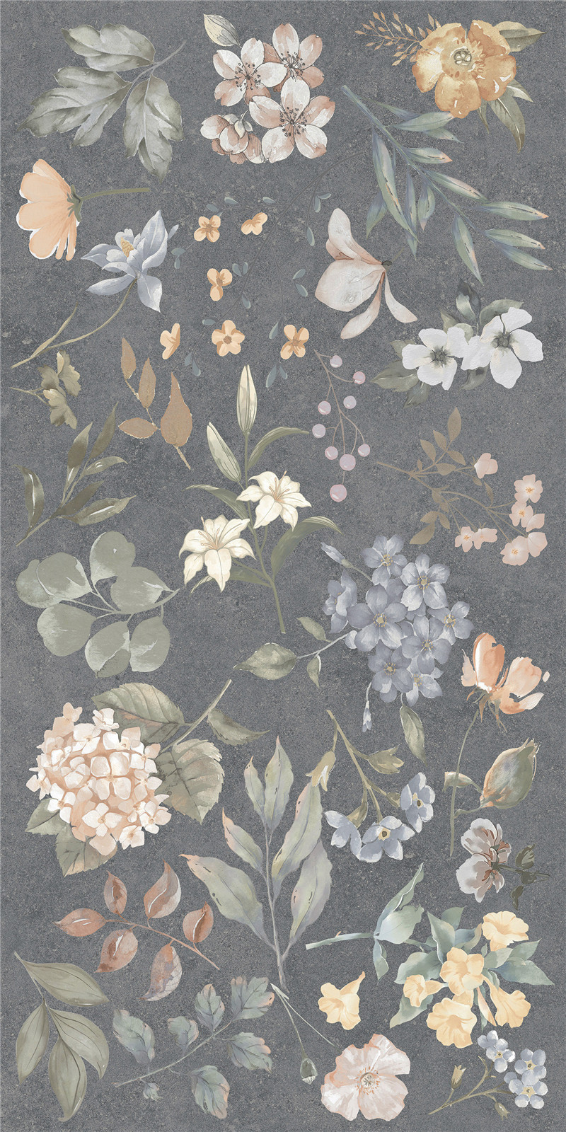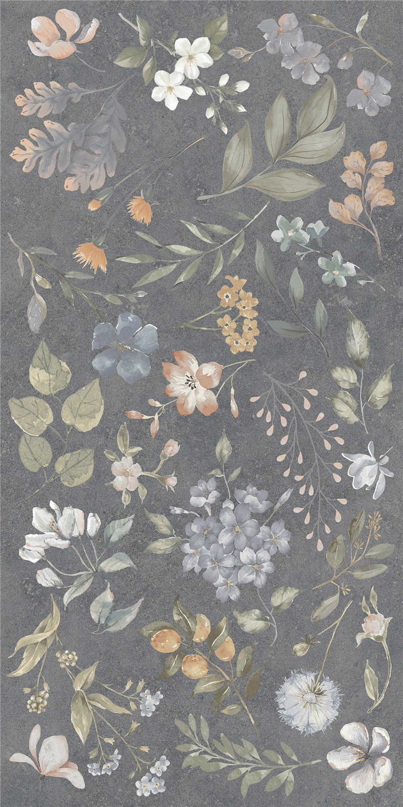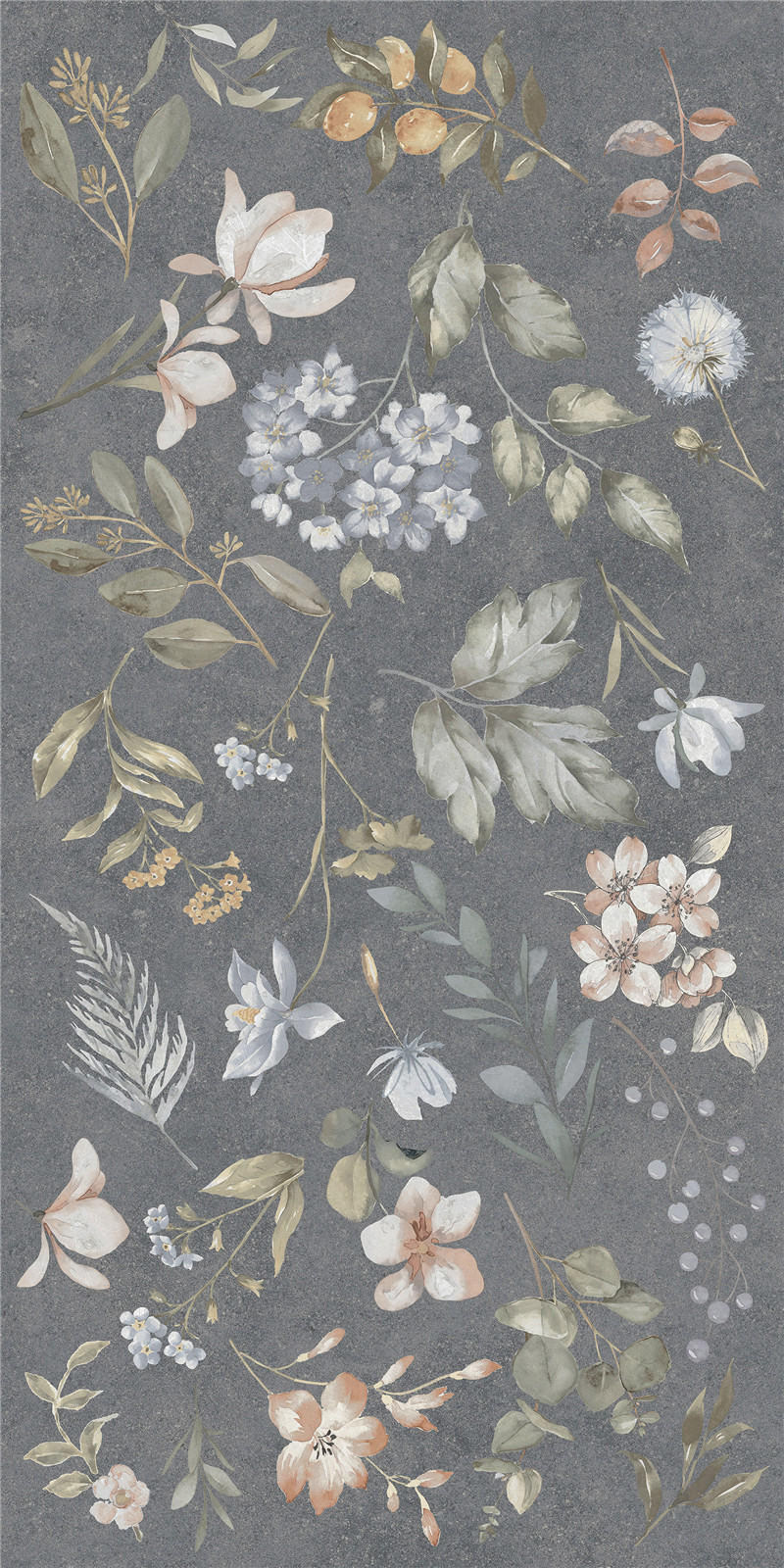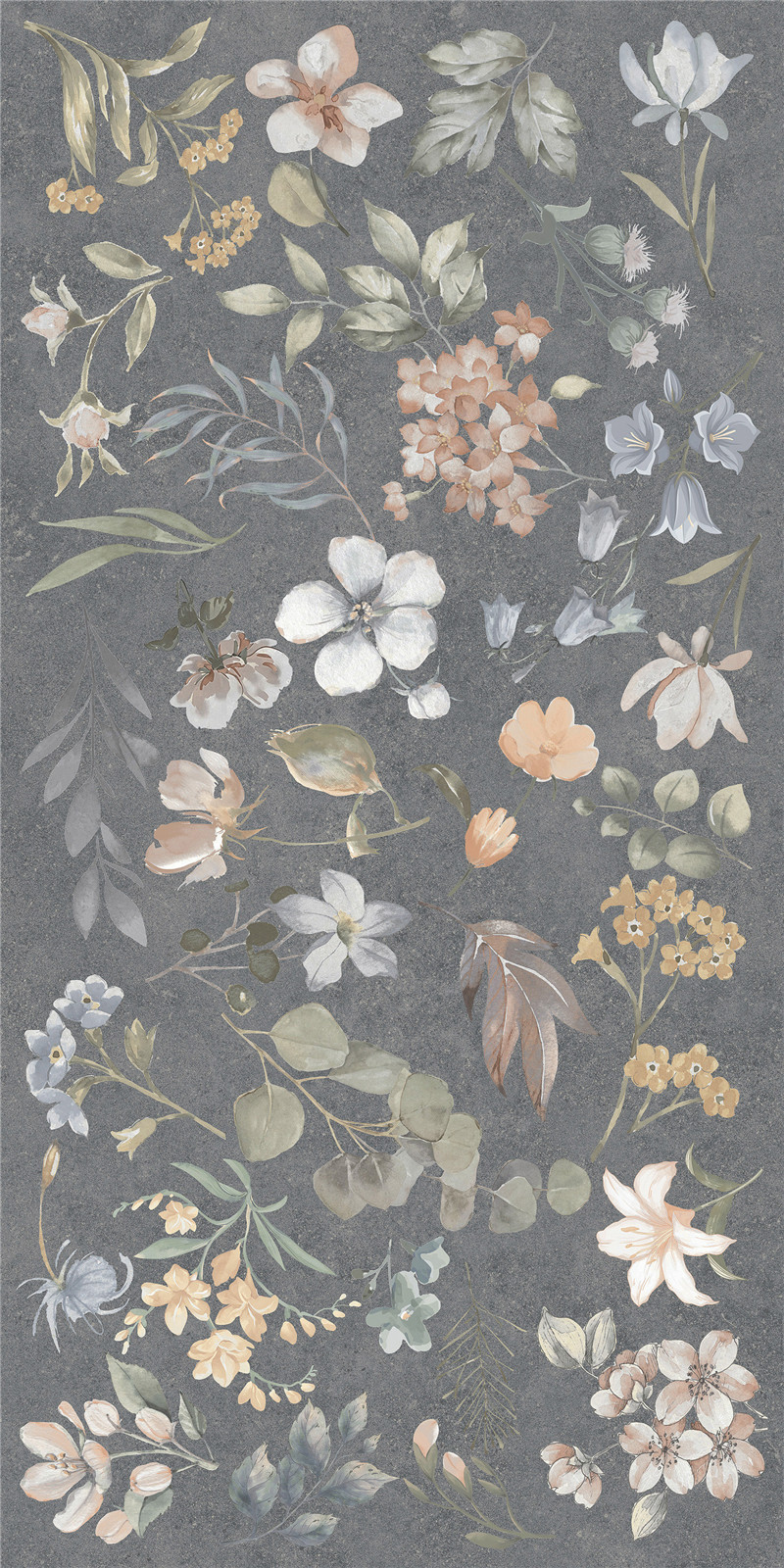 灰調(diào)如墨夜,繁花似星河漫舞。釉面細(xì)膩,彩瓣靈動,將自然詩意凝于磚上,為空間織就浪漫輕奢的藝術(shù)錦緞,盡顯雅致風(fēng)華。